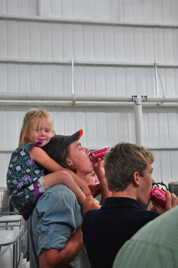 My mom happened to be in town from North Carolina which was a nice surprise. Right beside her is Clint, our son, and his wife, Alexis. Just love her “Love Thy Farmer” bag.