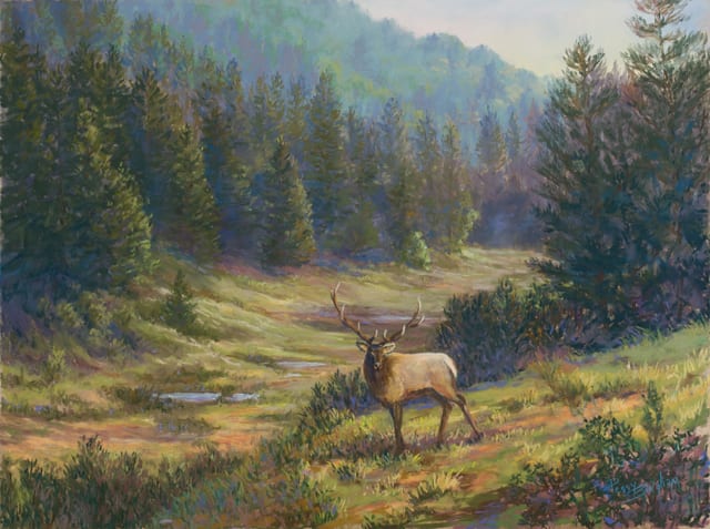 “Mountaintop Lake” is available as a 20″ x 24″ signed and numbered print. See more of Peggy’s paintings at her web site PeggyBingham.com You may contact Peggy about paintings, prints, or notecards at PaintingsbyPBingham@gmail.com