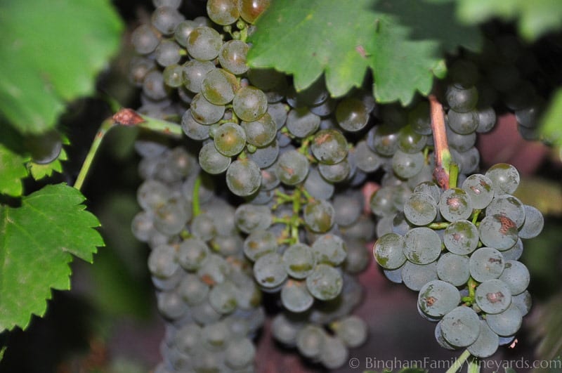 While most are of our red grapes, like these Merlot grapes and some later budding white grapes are mostly primary buds. What this means is that our harvest this year is being squish into a shorter total time period. In past years, harvest might have been spread out over six weeks or more. This year it may be started and ended within a month.
