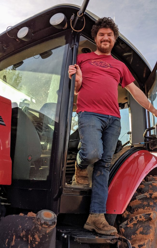 Blake Bingham of Bingham Family Vineyards on a tractor