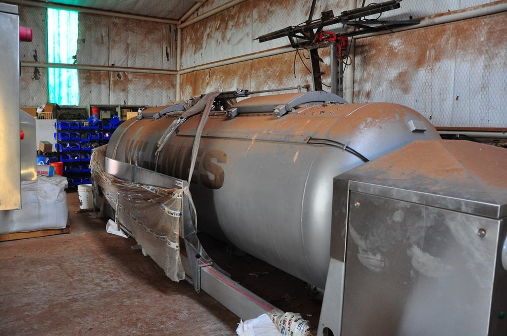 14.08.01_Vineyards_014 We need a place for this press. 14.08.01_Vineyards_013 And a place for this huge press. 14.08.04_VineyardEquipment_017-web   Some pieces to move the grapes from point to point. 14.08.04_VineyardEquipment_006-web   Like these conveyors. 14.08.04_VineyardEquipment_003-web   And a place for this special piece of equipment. A Pellence Selectiv sorting system. The main purpose of the machine is to allow us to provide the highest quality harvest to our wineries. An improvement in the complexity and aromatic intensity, suppleness of the tannins, and just purer wines with reduced herbaceous character, bitterness, astringency, and dryness.   14.08.04_VineyardEquipment_015-web   Everyone is interested in this piece of equipment as you can see. 14.08.04_VineyardEquipment_021-web   14.08.04_VineyardEquipment_019-web