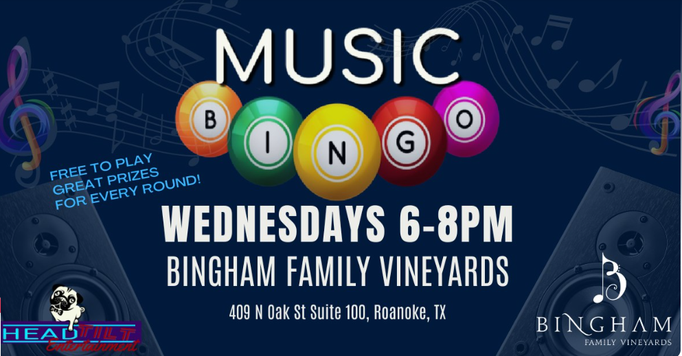 Join us for Music Bingo FUN at Bingham Family Vineyards – Roanoke