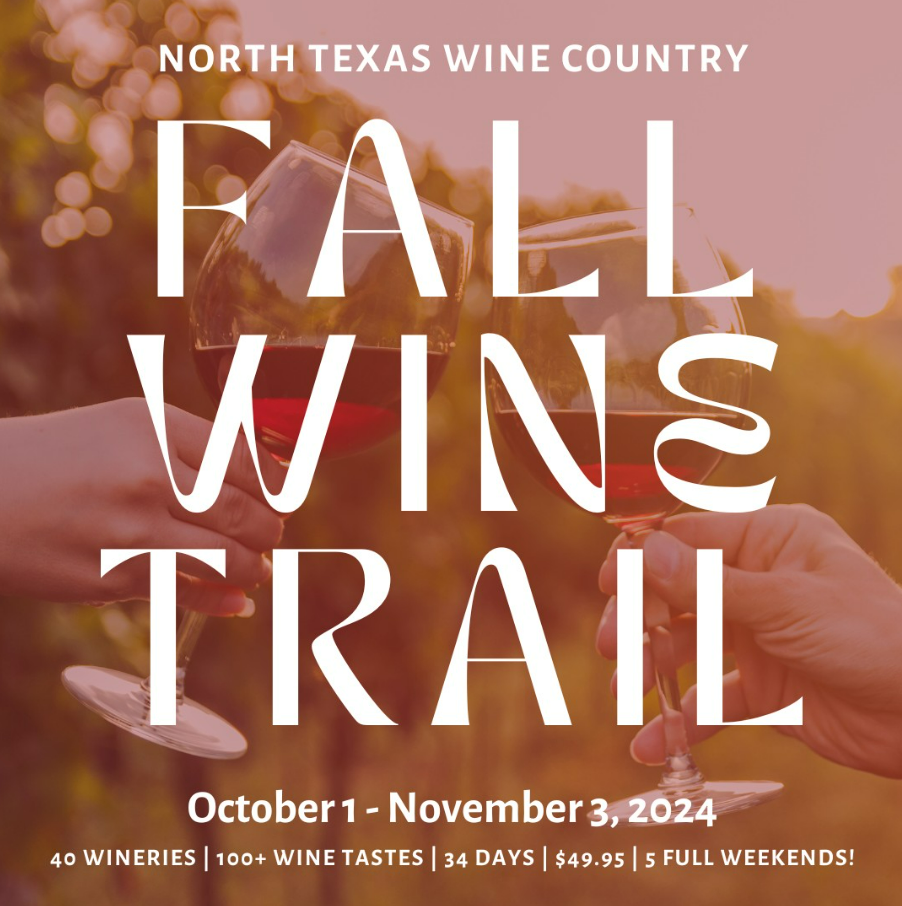 Wineries in the North Texas Wine Country welcome you to each of their unique tasting rooms for a special tasting of award-winning wines during the entire month of October! Wine tastings include a minimum of 3 tastes at each winery. Visit a few or visit all wineries during the month of October and taste up over 100 wines made in the beautiful North Texas Wine Country! Scan your printed or digital QR code at your first winery visit to check-in and redeem your wine tasting passport. Tickets are emailed upon purchase.