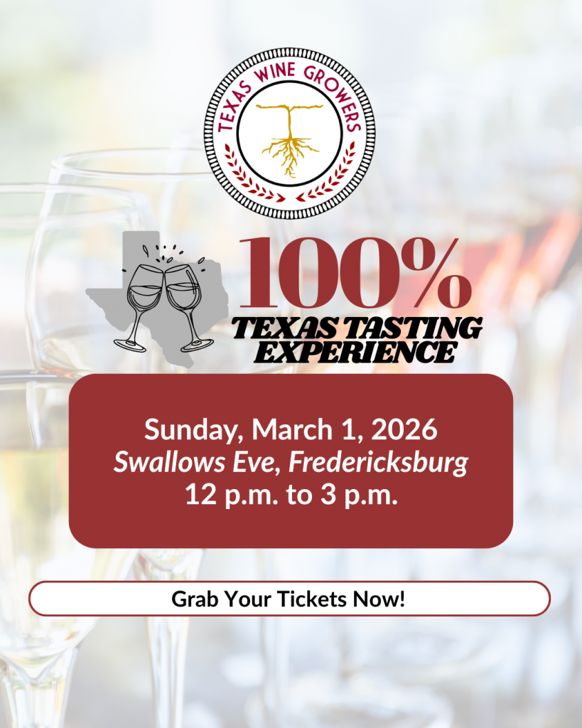 Texas Wine Growers, 100% Texas Tasting Experience, Sunday, March 1, 2026, Fredericksburg, Texas