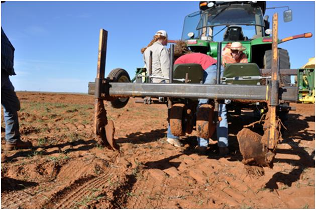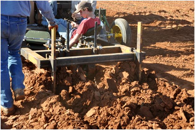 I almost forgot. You have to cover those little stick up with dirt so that they will grow right. The two plows on the end do just that. You can see one little stick sticking out of the ground at the back of the plow.