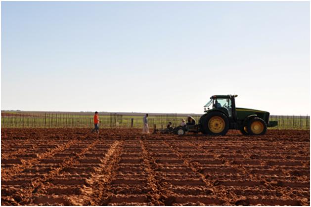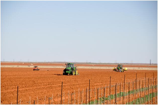 Having two tractors and two plows running sure puts in the plants fast considering they didn’t start planting till sometime after lunch. It was great to finish up 5 areas that day which equates to 7,000 plants. 7,000 done now only 70,000 more to plant in the next week or so. Just 50 more acres to go this spring. Next the rows will be flooded to “water” the grapes in. The soil here is nice and moist.