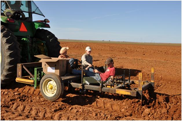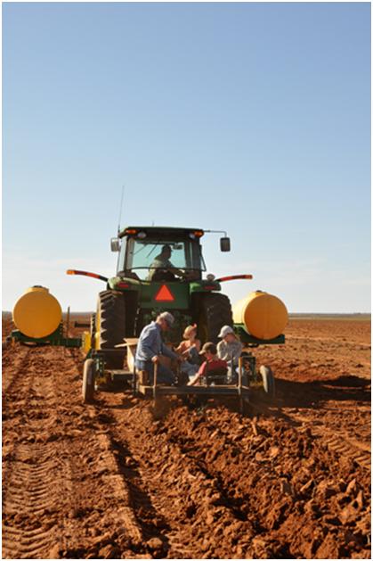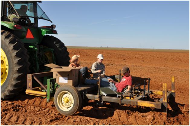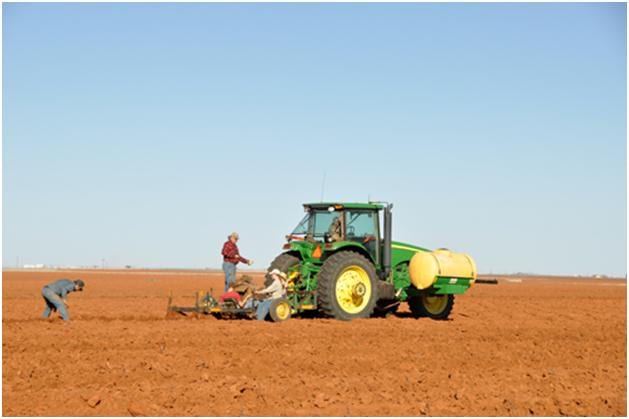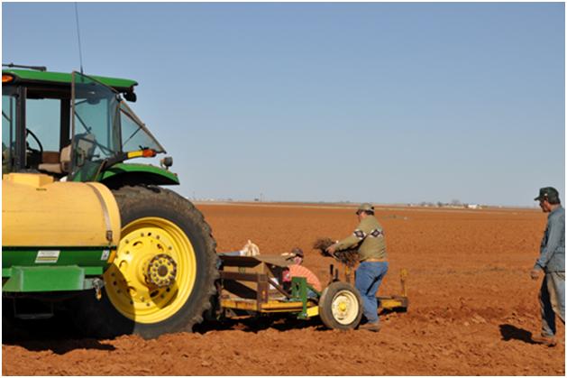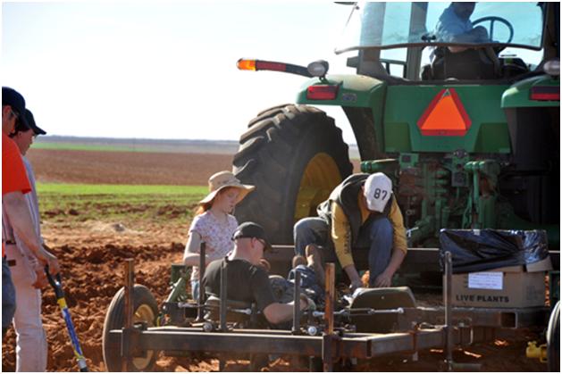 If you notice the two people following behind the tractor, their job is to make sure that the plant is in the ground and pretty straight up instead of at an angle.