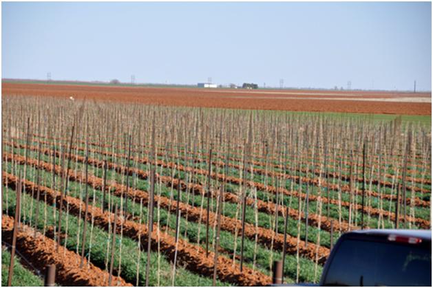 Add some t-posts, bamboo, wire, rye grass and a year later you end up with rows of longer sticks plants. Can’t hardly see them right. That’s OK, I’m not sure I can see them.