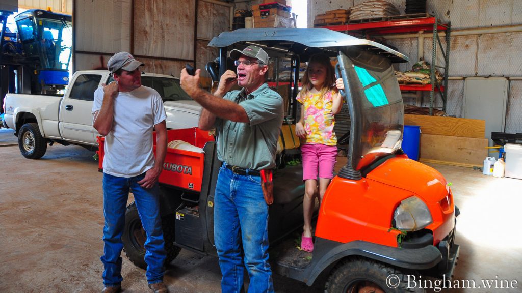 For starter, I don’t know what these guys are doing here, but they are in front of the little Kubota that we use to haul in the grape samples from the field.