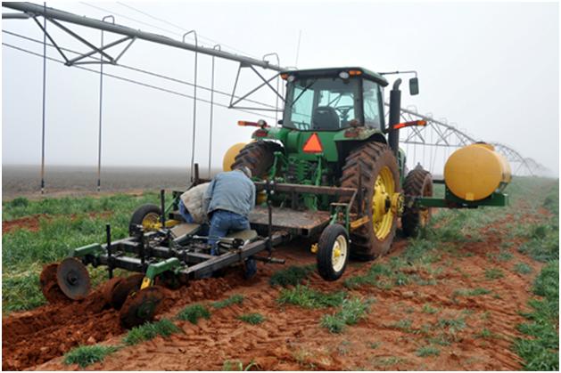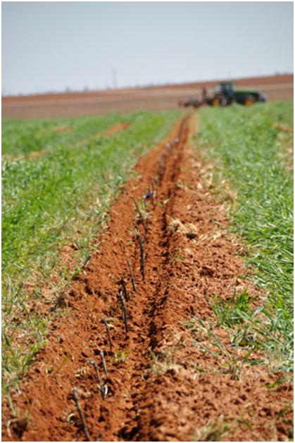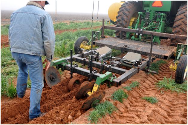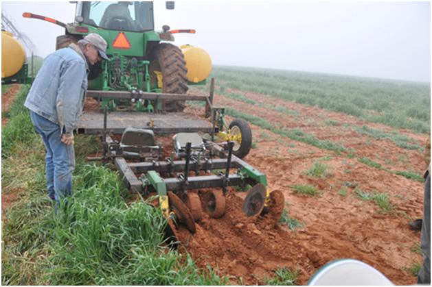 In this field, drip tape was laid in the ground and then rye was planted to keep the sand from blowing. This idea in itself is a good idea, but then how do you get those little sticks grape plants in the ground with the planter. The idea at first was to take the busters or shear plows off the back of the plow and put disks on instead.