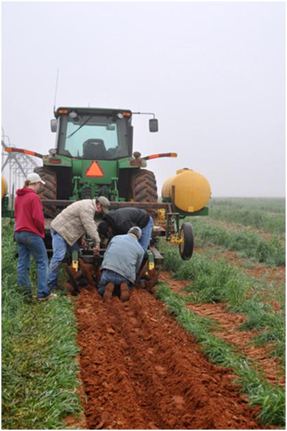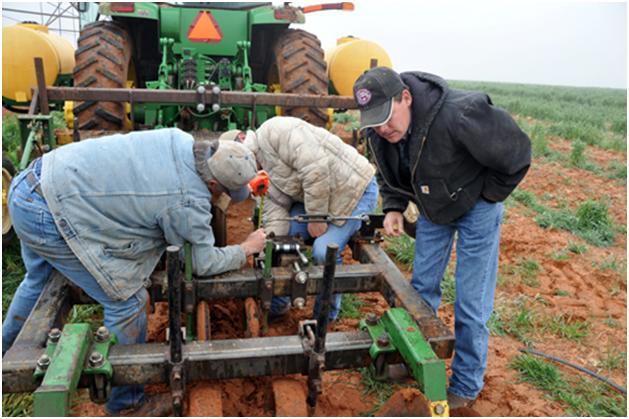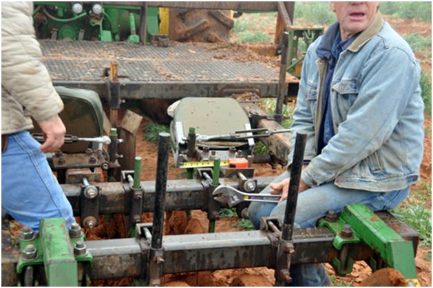 Back to adjustments. Sometimes I wonder when we are ever going to get the planting started. Hey, guys, I came out here to take pictures of you planting not fixing the planter plow.