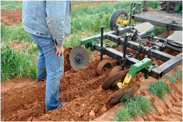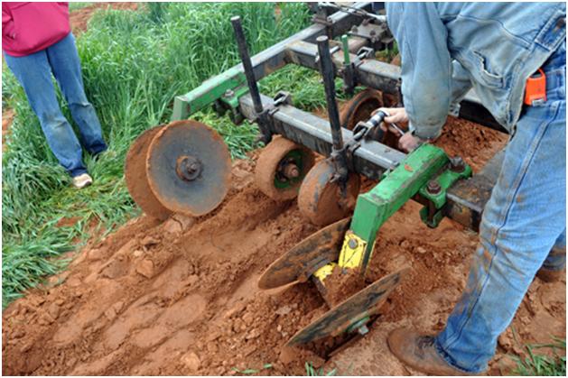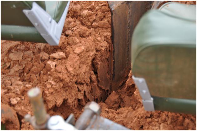 Here you can see that blade cutting through the moist soil. That is very nice moist soil for the plants to be going into. We just have to figure out HOW to get the plants into this moist ground.