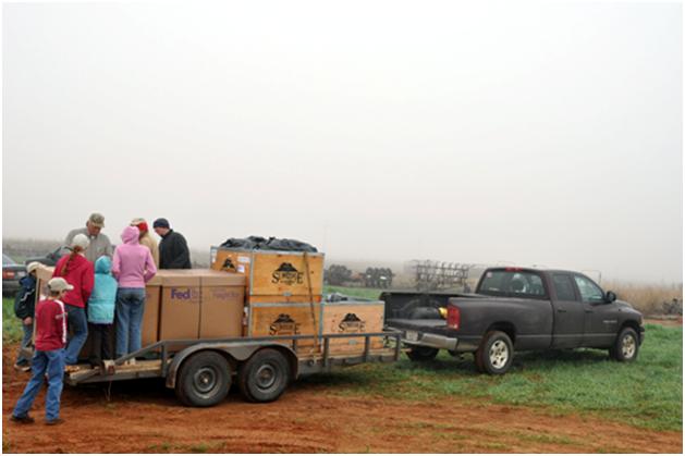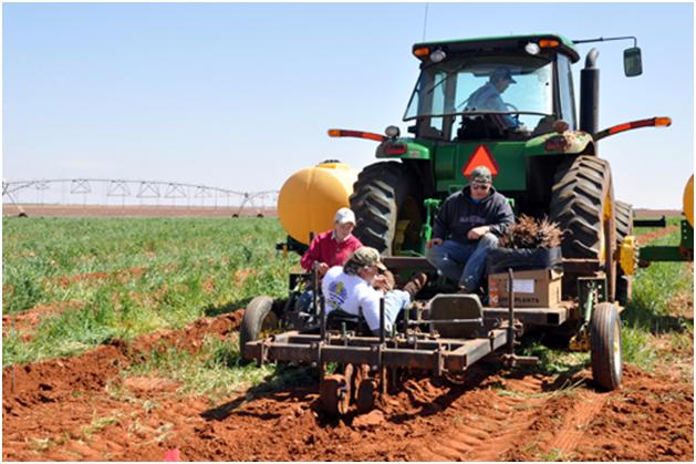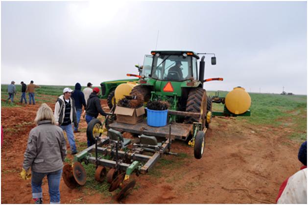 Here we are loading the plants on to the plow. See the box and the blue tub.