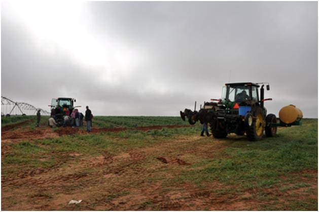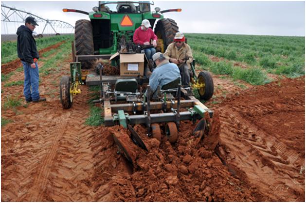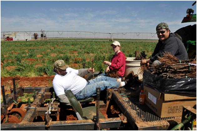 Here’s ol’ Bobby Cox looking things over. He is talking with Nick. Nick is our nephew that we are helping put in his grape plants. Nick is putting in 20 acres this year. Rousanne, Tempranillo, Viognier, and Orange Muscat are the grape varieties that he is putting in. He is a really great guy. And yes, girls, he is single. Sometimes it is just hard for a farmer guy to find a girl when he is out in the field all the time.