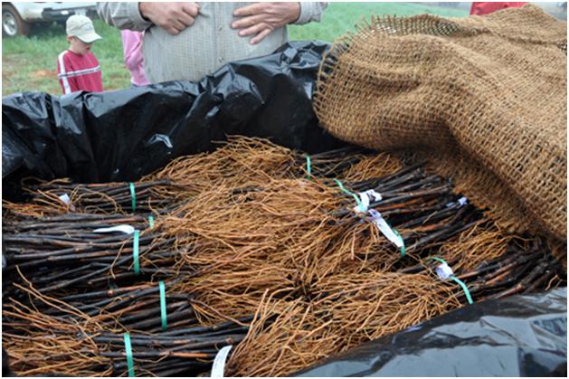 It was a little disconcerting the first year we got any plants. After paying as much money as you have to for grape plants, it is a little let down when you first see them, just bundles of sticks.