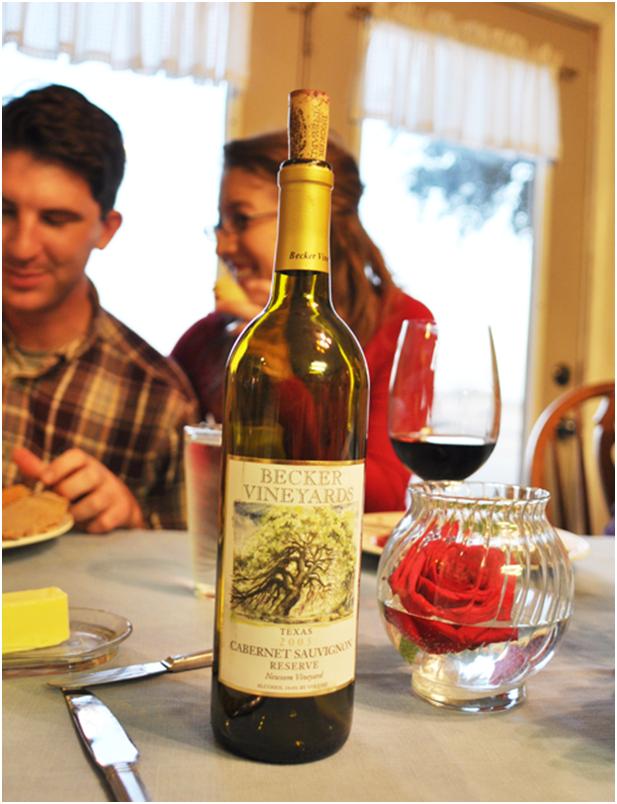 Hmmm, sometimes it is hard when you aren’t supposed to say anything about something. Maybe I’ll just put a picture of our celebration wine that we drank at dinner tonight. Notice the bottle and the rose…