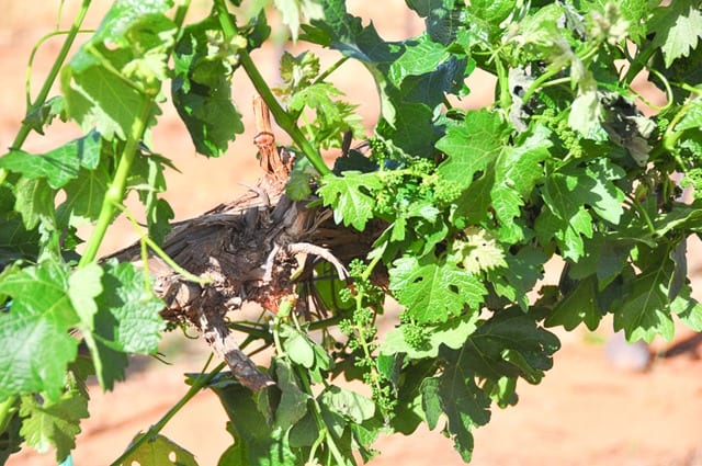 As you can see, some of the spur pruned plants that I spoke of in a post a few weeks back, didn’t fair too well. But the plants are coming on with full “heads”. Now the decision will be made to chose different spurs or go with more of a head pruned type of spur pruning.